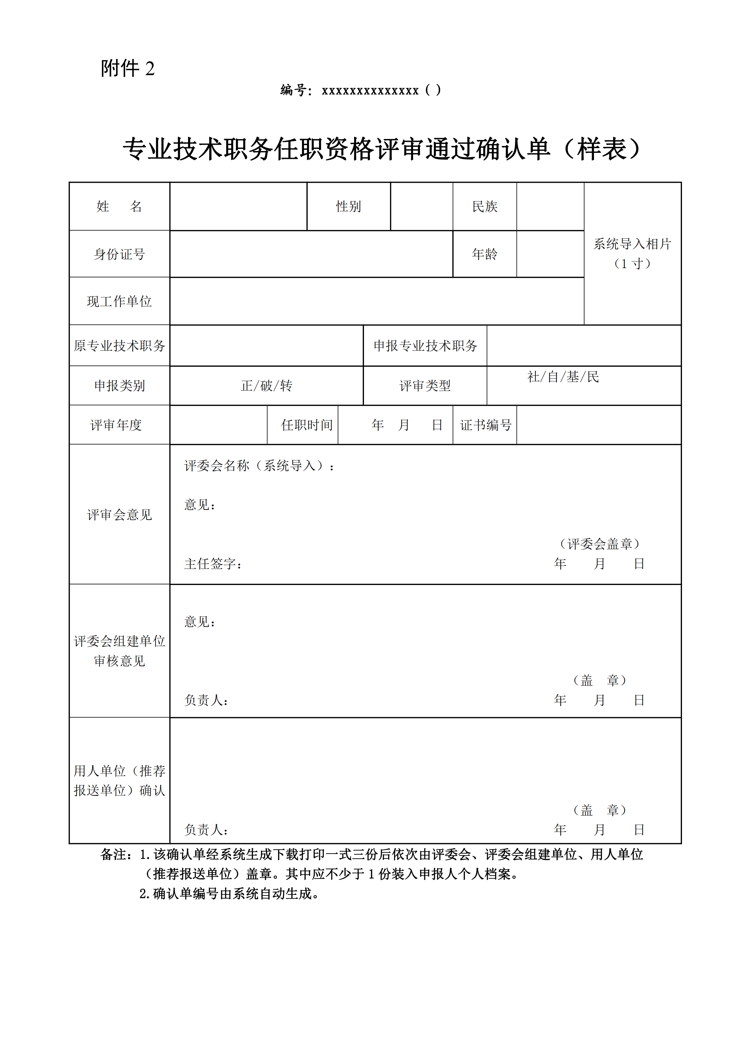2.專業(yè)技術(shù)職務任職資格評審通過確認單(樣表)